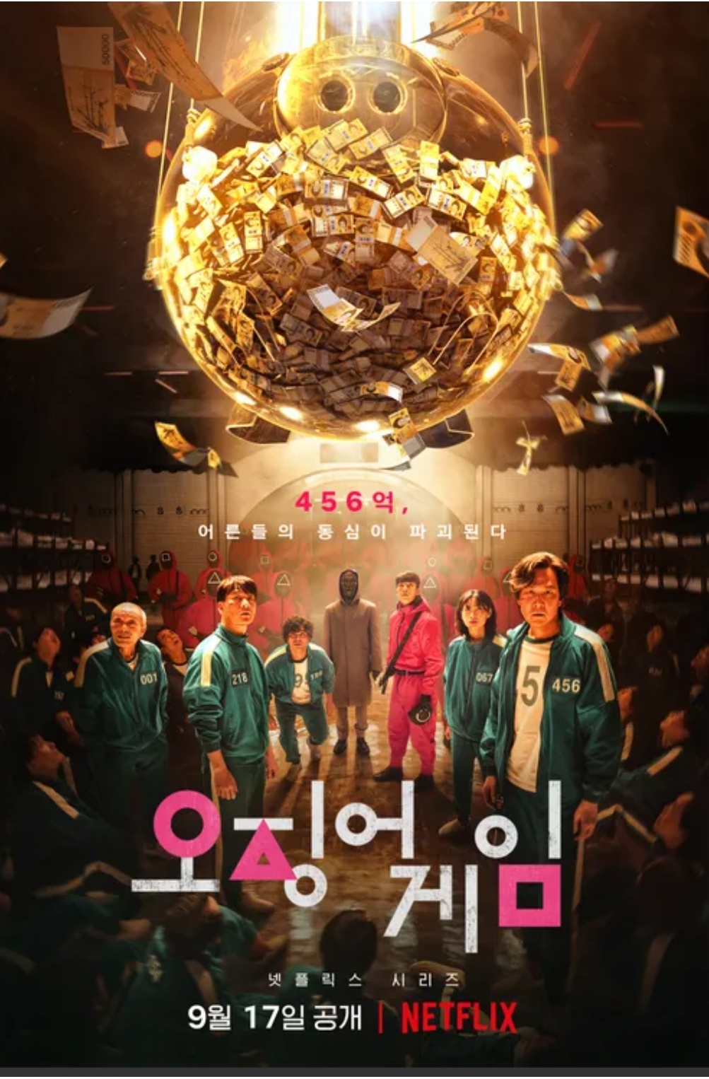 오징어 게임은 2021년 9월 Netflix에서 공개된 한국 오리지널 시리즈로, 전 세계적인 흥행 돌풍을 일으키며 전례 없는 화제를 모았다. 이 작품은 현대 사회의 불평등과 경쟁 구조를 극단적으로 보여주는 재치 있는 설정과 탄탄한 스토리텔링으로 전 세계 시청자들의 열렬한 반응을 이끌어냈다.